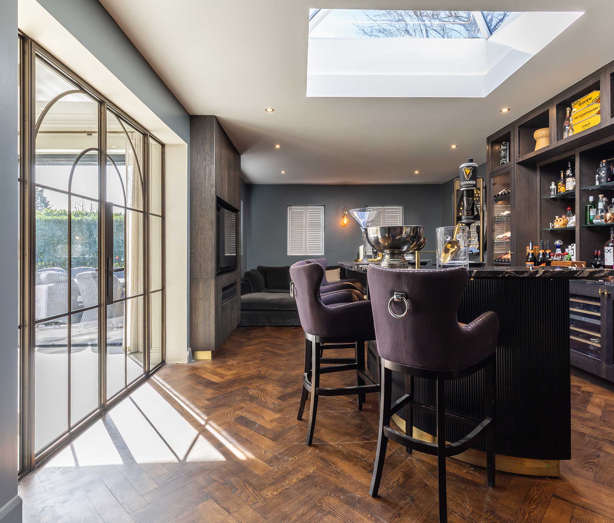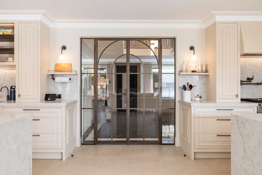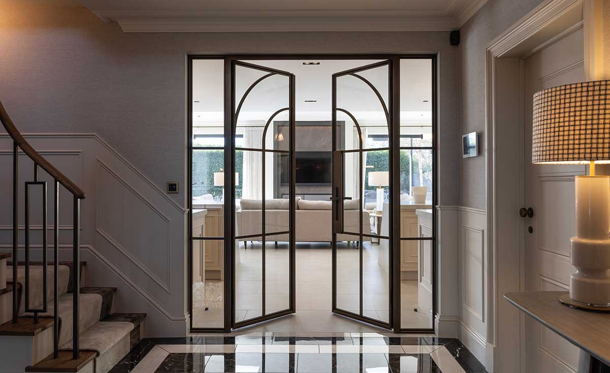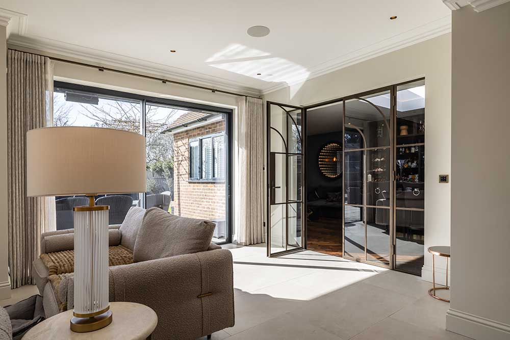 Narrow sightlines also support the wider popularity of steel-look glazing in interior design. Whether used in a period renovation or a contemporary extension, slim-profile steel doors have a timeless quality that works across many different architectural styles.