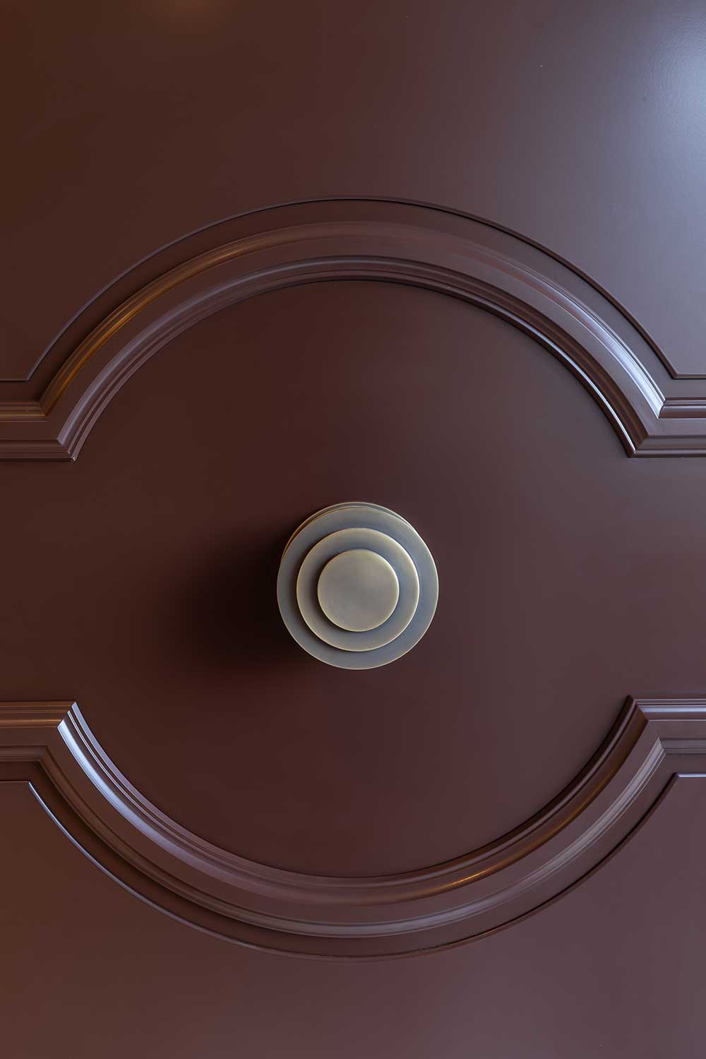 Ossido Bruno is the perfect finish for those considering a modern door in copper, bronze and corten hues. Our ceramic finishes can be applied as a single flush piece, as shown on this RK450 hinged model, or a more bespoke design with strips or bands.